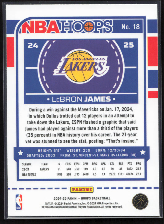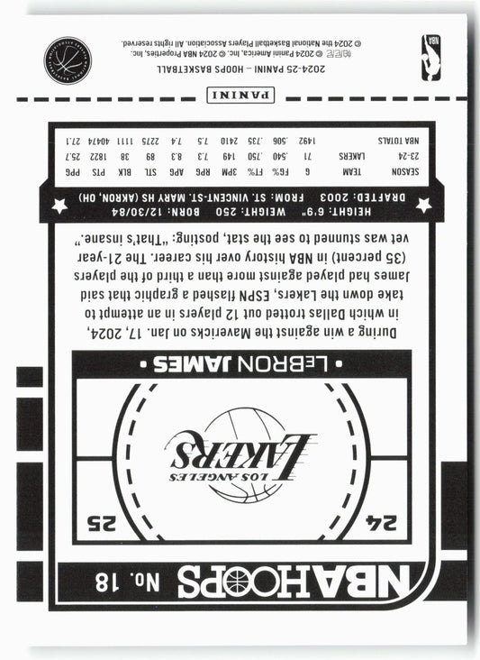 This is a nice example of a 2024-25 Hoops #18 LeBron James Premium Other important information about this card:In 2024 LeBron James played for the Los Angeles Lakers.Please check out...