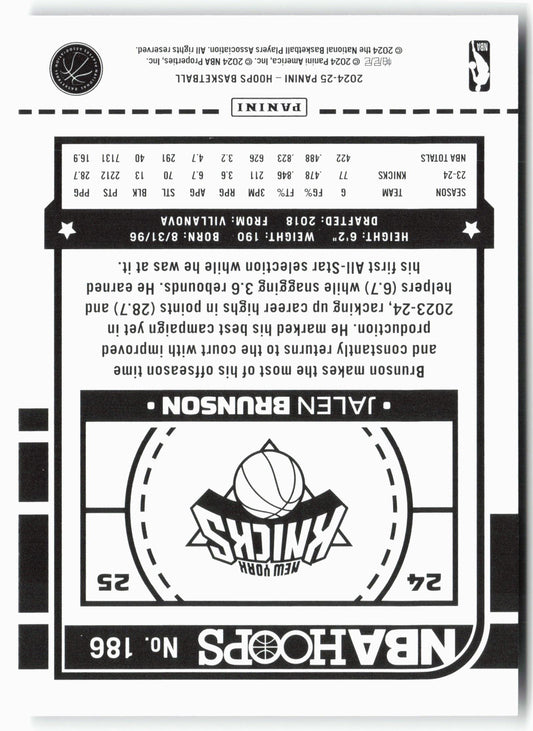 This is a nice example of a 2024-25 Hoops #186 Jalen Brunson Other important information about this card:In 2024 Jalen Brunson played for the New York Knicks.Please check out our...