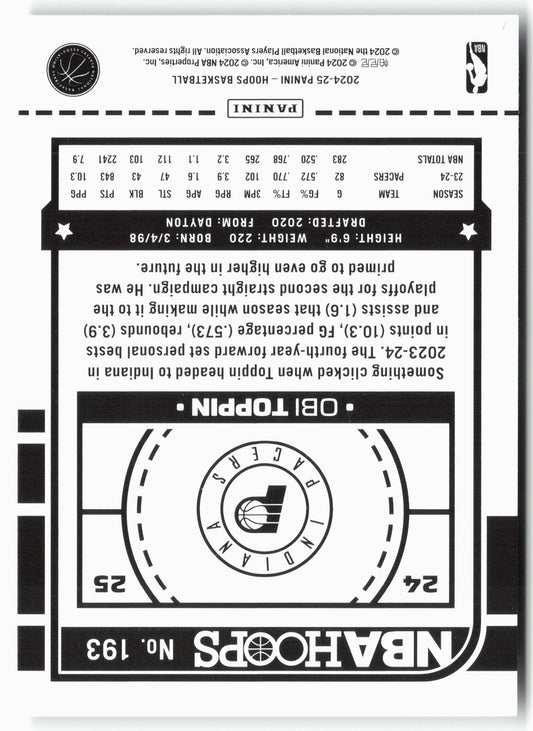 This is a nice example of a 2024-25 Hoops #193 Obi Toppin Other important information about this card:In 2024 Obi Toppin played for the Indiana Pacers.Please check out our other...