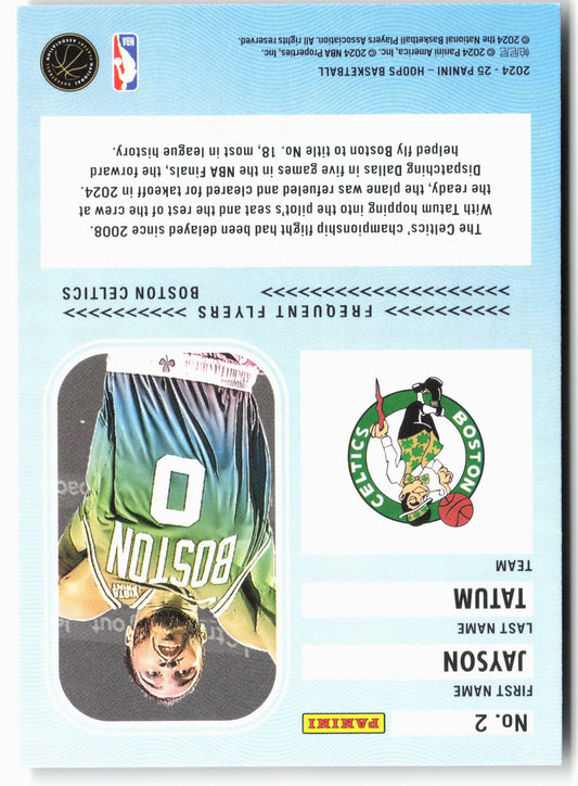 This is a nice example of a 2024-25 Hoops #2 Jayson Tatum Frequent Flyers Other important information about this card:In 2024 Jayson Tatum played for the Boston Celtics.Please check out...
