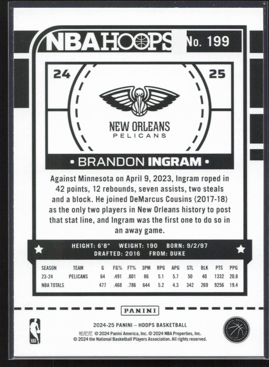 This is a nice example of a 2024-25 Hoops #199 Brandon Ingram Texture Other important information about this card:In 2024 Brandon Ingram played for the New Orleans Pelicans.Please check out...