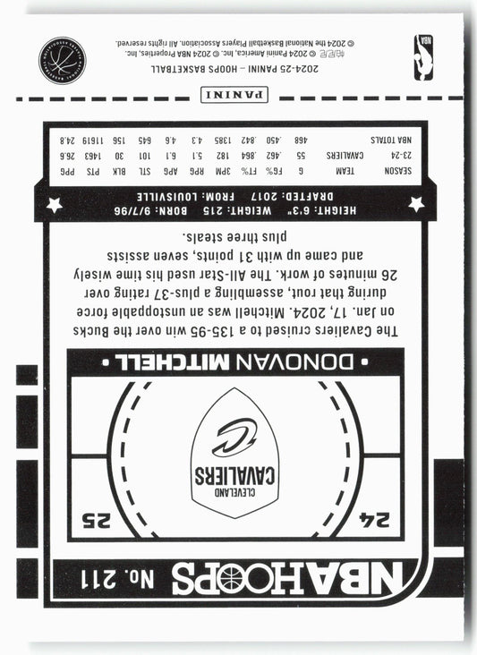This is a nice example of a 2024-25 Hoops #211 Donovan Mitchell Premium Other important information about this card:In 2024 Donovan Mitchell played for the Cleveland Cavaliers.Please check out our...
