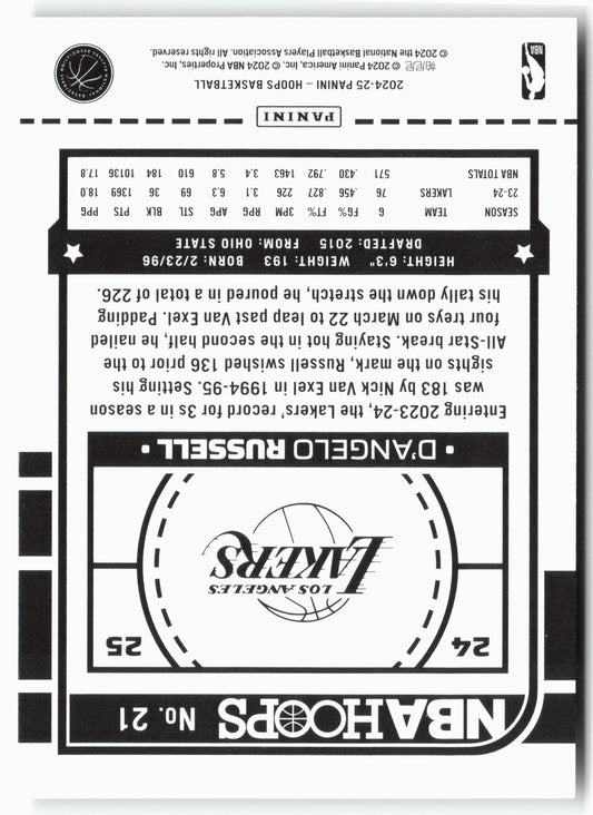 This is a nice example of a 2024-25 Hoops #21 D'Angelo Russell Other important information about this card:In 2024 D'Angelo Russell played for the Los Angeles Lakers.Please check out our...