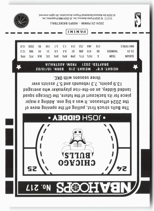 This is a nice example of a 2024-25 Hoops #217 Josh Giddey Other important information about this card:In 2024 Josh Giddey played for the Chicago Bulls.Please check out our other...