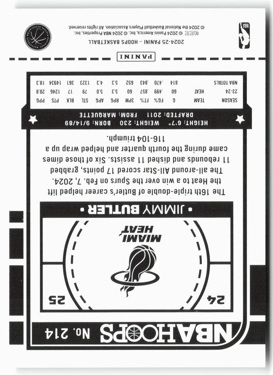 This is a nice example of a 2024-25 Hoops #214 Jimmy Butler Other important information about this card:In 2024 Jimmy Butler played for the Miami Heat.Please check out our other...