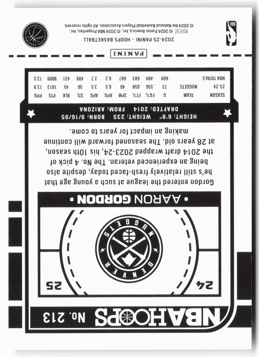This is a nice example of a 2024-25 Hoops #213 Aaron Gordon Other important information about this card:In 2024 Aaron Gordon played for the Denver Nuggets.Please check out our other...