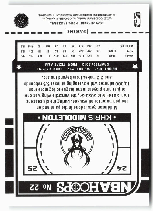 This is a nice example of a 2024-25 Hoops #22 Khris Middleton Other important information about this card:In 2024 Khris Middleton played for the Milwaukee Bucks.Please check out our other...