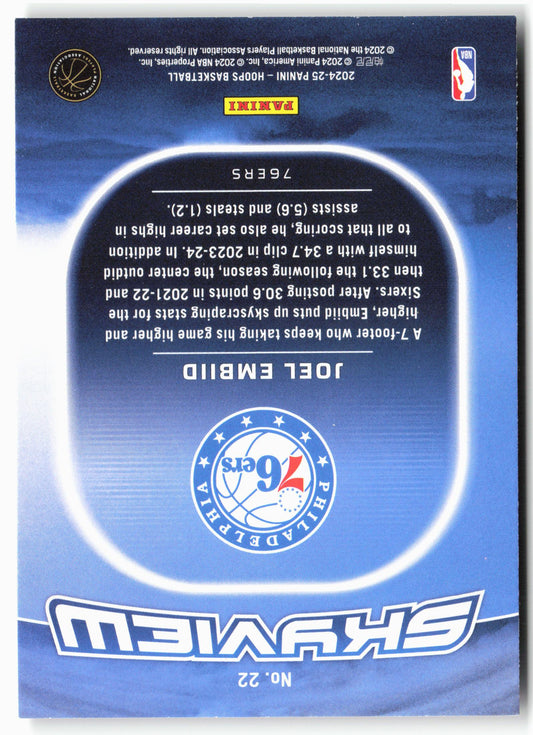 This is a nice example of a 2024-25 Hoops #22 Joel Embiid Skyview Other important information about this card:In 2024 Joel Embiid played for the Philadelphia 76ers.Please check out our...