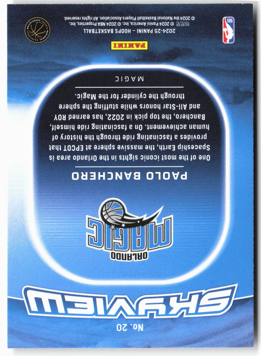 This is a nice example of a 2024-25 Hoops #20 Paolo Banchero Skyview Other important information about this card:In 2024 Paolo Banchero played for the Orlando Magic.Please check out our...