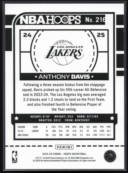 This is a nice example of a 2024-25 Hoops #216 Anthony Davis Artist Proof Other important information about this card:SNIn 2024 Anthony Davis played for the Los Angeles Lakers.Please check...