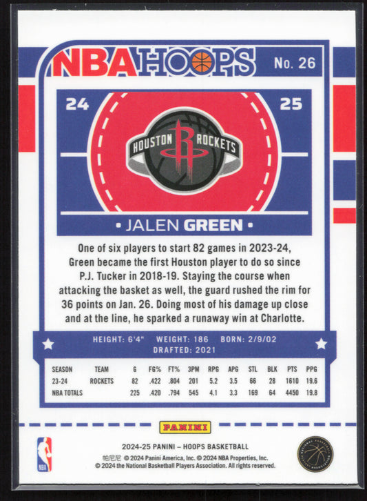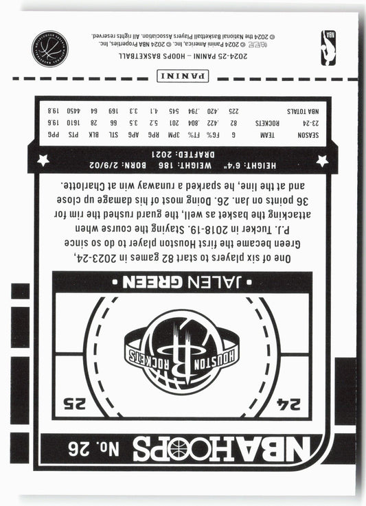 This is a nice example of a 2024-25 Hoops #26 Jalen Green Premium Other important information about this card:In 2024 Jalen Green played for the Houston Rockets.Please check out our...