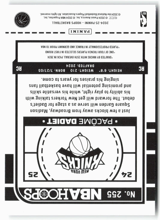 This is a nice example of a 2024-25 Hoops #255 Pacome Dadiet Other important information about this card:RCIn 2024 Pacome Dadiet played for the New York Knicks.Please check out our...