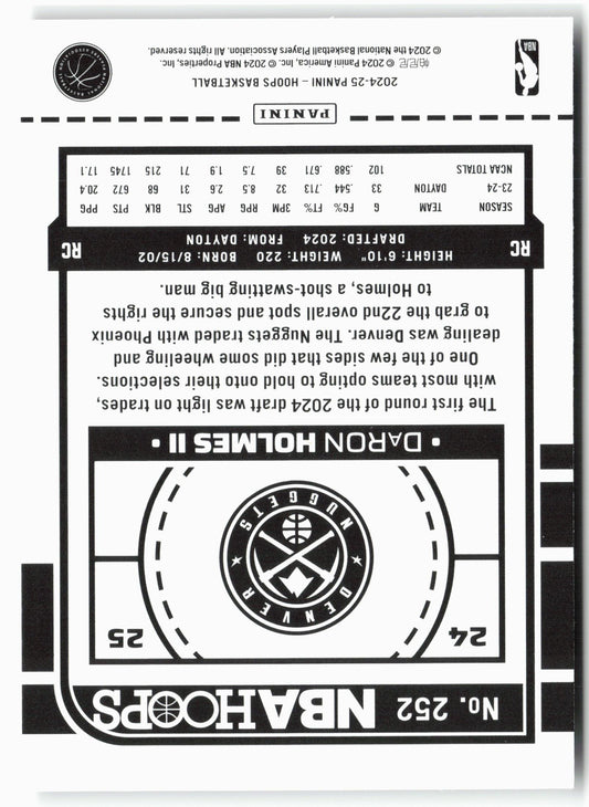 This is a nice example of a 2024-25 Hoops #252 DaRon Holmes II Other important information about this card:RCIn 2024 DaRon Holmes II played for the Denver Nuggets.Please check out...