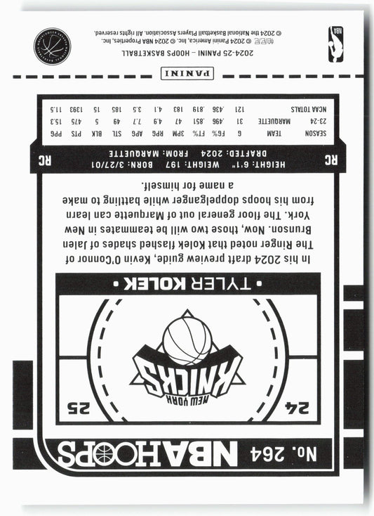 This is a nice example of a 2024-25 Hoops #264 Tyler Kolek Other important information about this card:RCIn 2024 Tyler Kolek played for the New York Knicks.Please check out our...