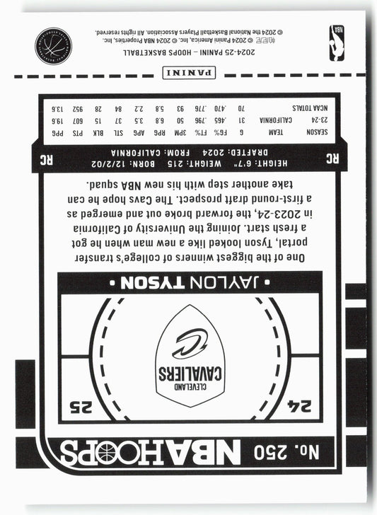 This is a nice example of a 2024-25 Hoops #250 Jaylon Tyson Other important information about this card:RCIn 2024 Jaylon Tyson played for the Cleveland Cavaliers.Please check out our other...