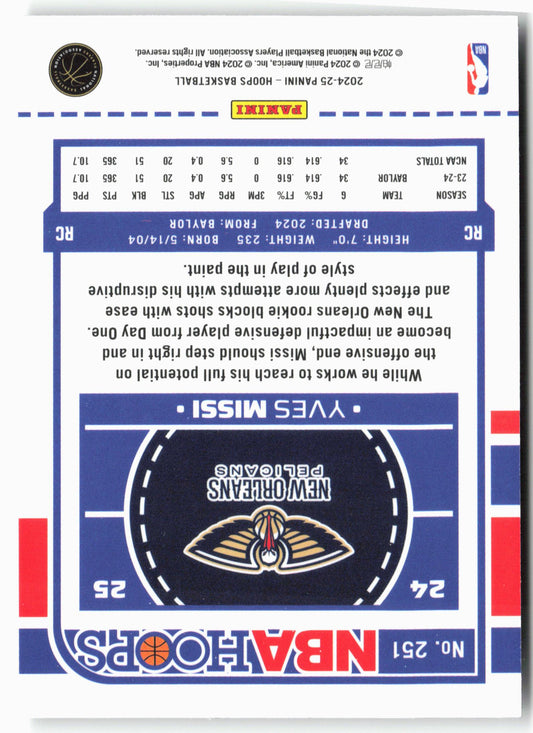 This is a nice example of a 2024-25 Hoops #251 Yves Missi Premium Other important information about this card:RCIn 2024 Yves Missi played for the New Orleans Pelicans.Please check out...