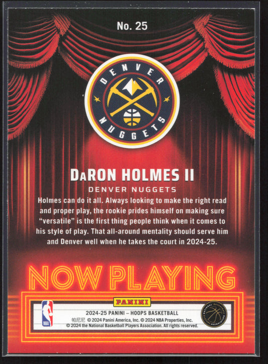 This is a nice example of a 2024-25 Hoops #25 DaRon Holmes II Now Playing Other important information about this card:In 2024 DaRon Holmes II played for the Denver Nuggets.Please...