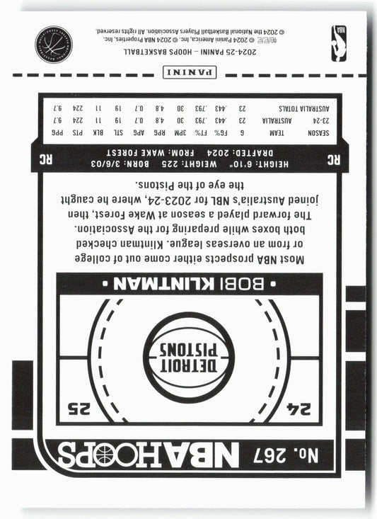This is a nice example of a 2024-25 Hoops #267 Bobi Klintman Other important information about this card:RCIn 2024 Bobi Klintman played for the Detroit Pistons.Please check out our other...