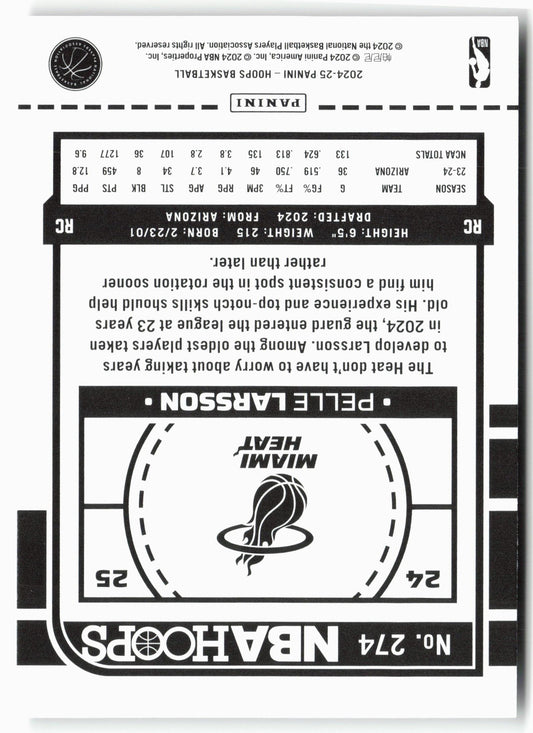 This is a nice example of a 2024-25 Hoops #274 Pelle Larsson Other important information about this card:RCIn 2024 Pelle Larsson played for the Miami Heat.Please check out our other...