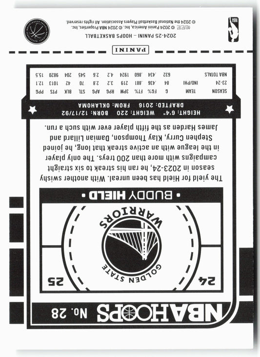 This is a nice example of a 2024-25 Hoops #28 Buddy Hield Other important information about this card:In 2024 Buddy Hield played for the Golden State Warriors.Please check out our...