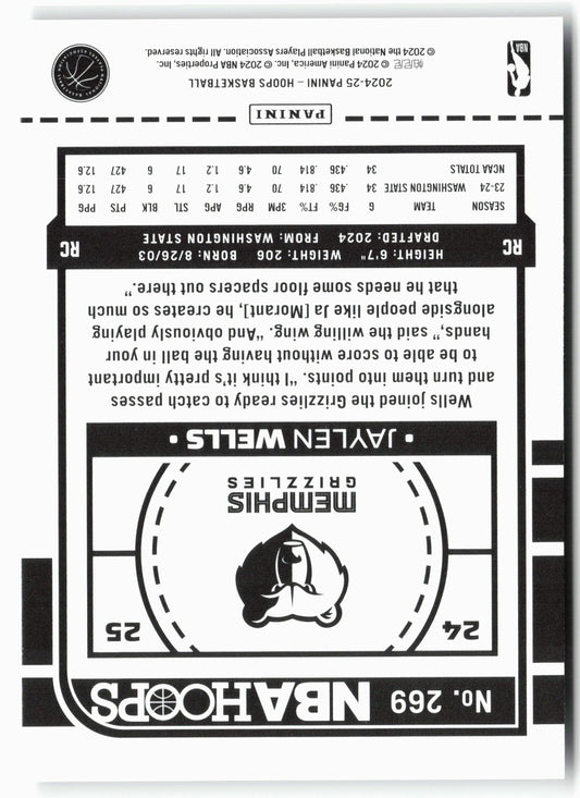 This is a nice example of a 2024-25 Hoops #269 Jaylen Wells Other important information about this card:RCIn 2024 Jaylen Wells played for the Memphis Grizzlies.Please check out our other...