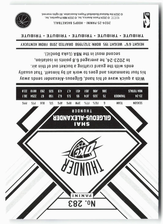 This is a nice example of a 2024-25 Hoops #283 Shai Gilgeous-Alexander Other important information about this card:In 2024 Shai Gilgeous-Alexander played for the Oklahoma City Thunder.Please check out our...