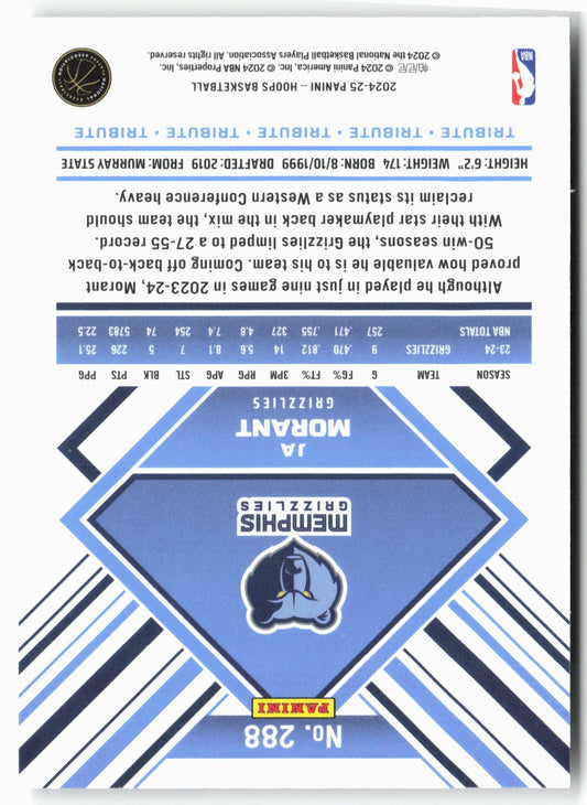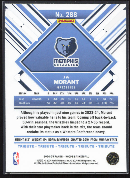 This is a nice example of a 2024-25 Hoops #288 Ja Morant Premium Other important information about this card:In 2024 Ja Morant played for the Memphis Grizzlies.Please check out our...