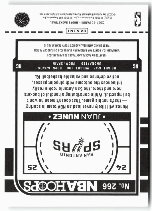 This is a nice example of a 2024-25 Hoops #266 Juan Núñez Other important information about this card:RCIn 2024 Juan Núñez played for the San Antonio Spurs.Please check out our...