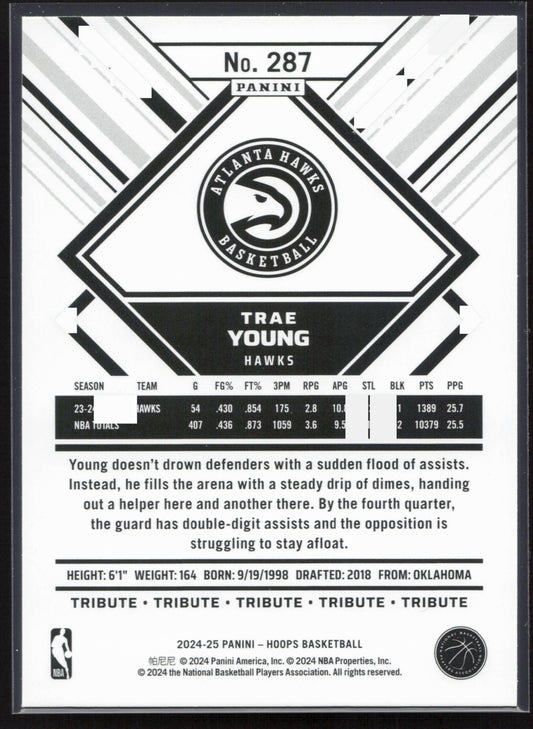 This is a nice example of a 2024-25 Hoops #287 Trae Young Other important information about this card:In 2024 Trae Young played for the Atlanta Hawks.Please check out our other...