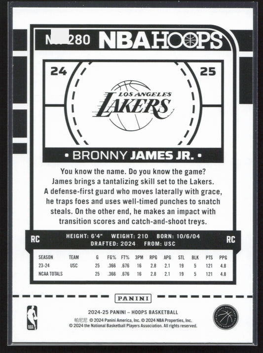This is a nice example of a 2024-25 Hoops #280 Bronny James Jr. Texture Other important information about this card:RCIn 2024 Bronny James Jr. played for the Los Angeles Lakers.Please...