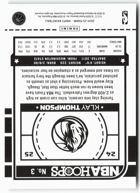 This is a nice example of a 2024-25 Hoops #3 Klay Thompson Other important information about this card:In 2024 Klay Thompson played for the Dallas Mavericks.Please check out our other...