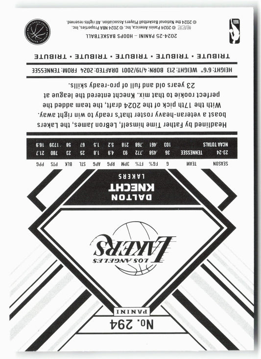 This is a nice example of a 2024-25 Hoops #294 Dalton Knecht Other important information about this card:In 2024 Dalton Knecht played for the Los Angeles Lakers.Please check out our...