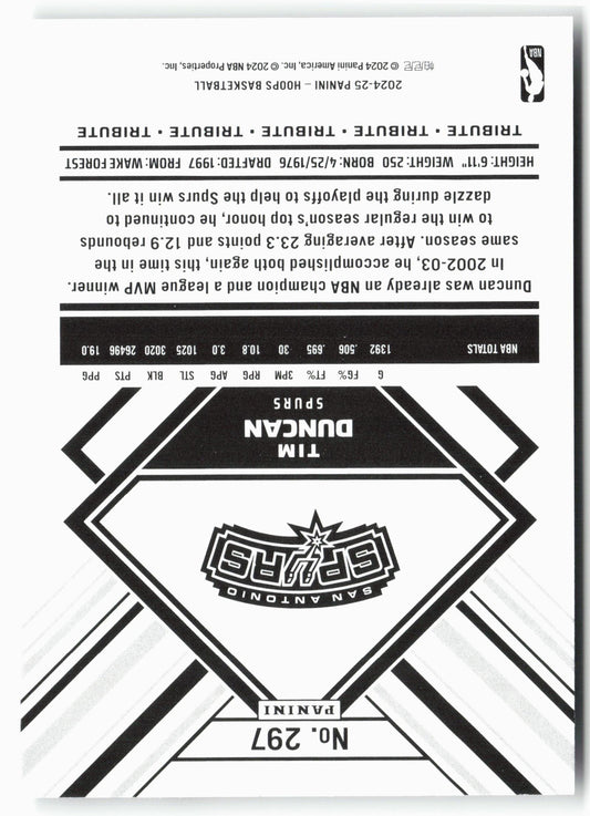 This is a nice example of a 2024-25 Hoops #297 Tim Duncan Other important information about this card:In 2024 Tim Duncan played for the San Antonio Spurs.Please check out our...