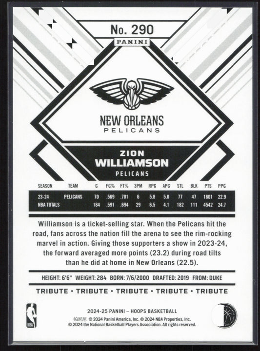 This is a nice example of a 2024-25 Hoops #290 Zion Williamson Other important information about this card:In 2024 Zion Williamson played for the New Orleans Pelicans.Please check out our...