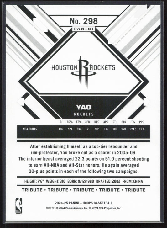 This is a nice example of a 2024-25 Hoops #298 Yao Ming Other important information about this card:In 2024 Yao Ming played for the Houston Rockets.Please check out our other...