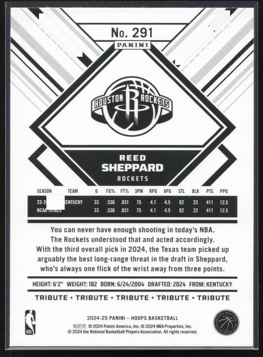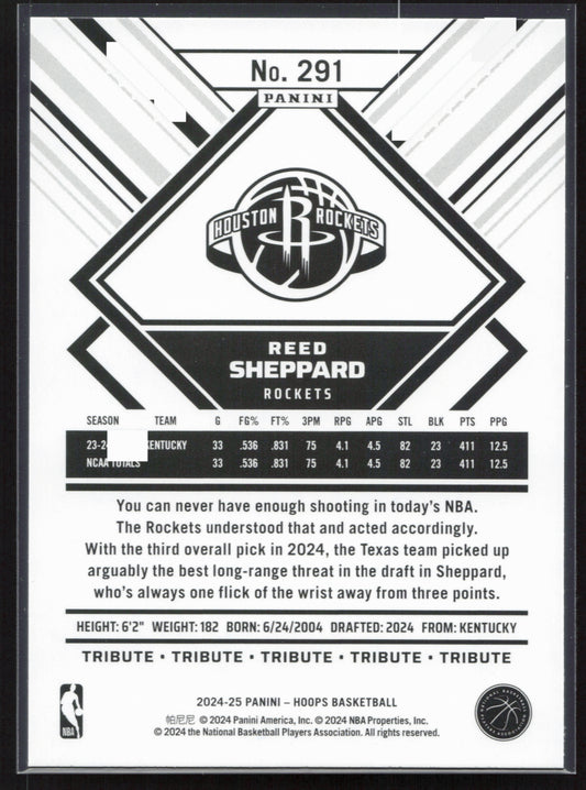 This is a nice example of a 2024-25 Hoops #291 Reed Sheppard Other important information about this card:In 2024 Reed Sheppard played for the Houston Rockets.Please check out our other...