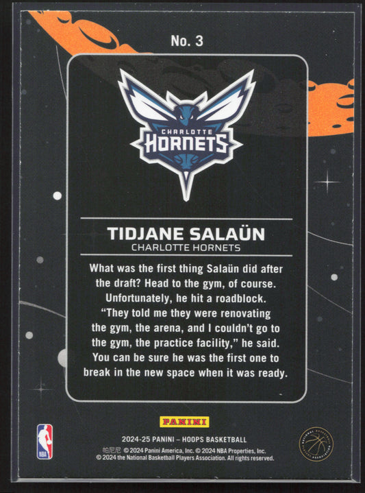 This is a nice example of a 2024-25 Hoops #3 Tidjane Salaun Anti Gravity Other important information about this card:In 2024 Tidjane Salaun played for the Charlotte Hornets.Please check out...