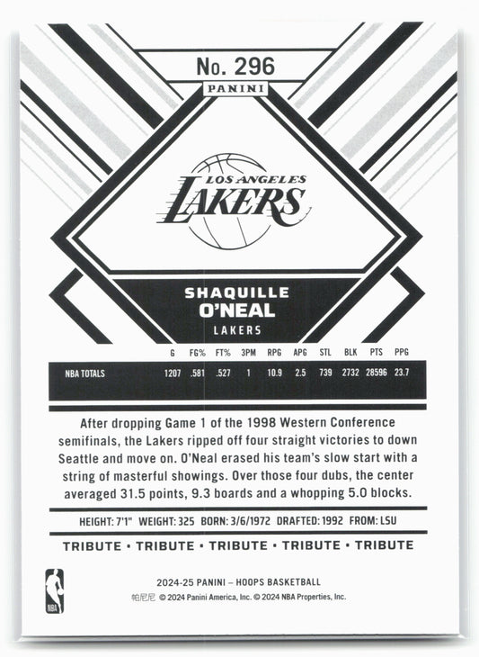 This is a nice example of a 2024-25 Hoops #296 Shaquille O'Neal Other important information about this card:In 2024 Shaquille O'Neal played for the Los Angeles Lakers.Please check out our...