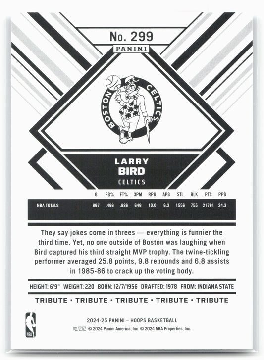 This is a nice example of a 2024-25 Hoops #299 Larry Bird Other important information about this card:In 2024 Larry Bird played for the Boston Celtics.Please check out our other...