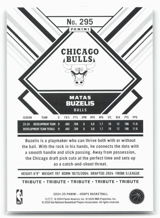 This is a nice example of a 2024-25 Hoops #295 Matas Buzelis Other important information about this card:In 2024 Matas Buzelis played for the Chicago Bulls.Please check out our other...