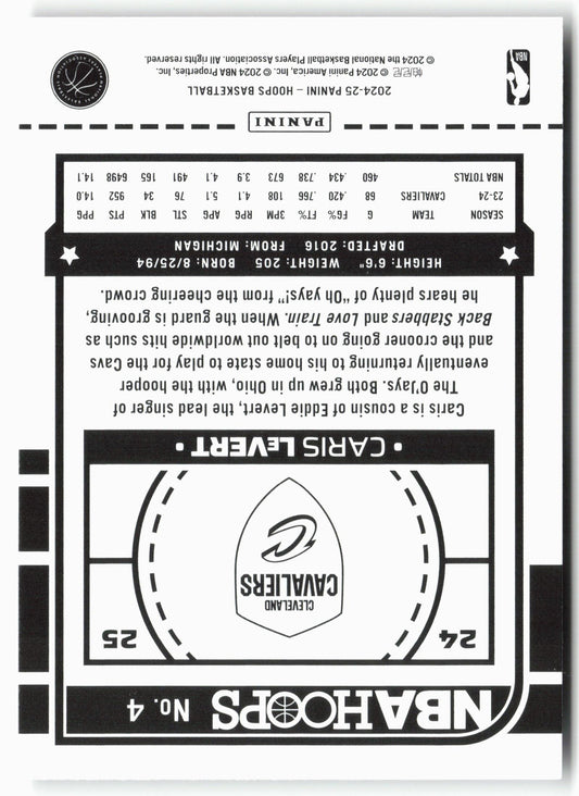 This is a nice example of a 2024-25 Hoops #4 Caris LeVert Other important information about this card:In 2024 Caris LeVert played for the Cleveland Cavaliers.Please check out our other...