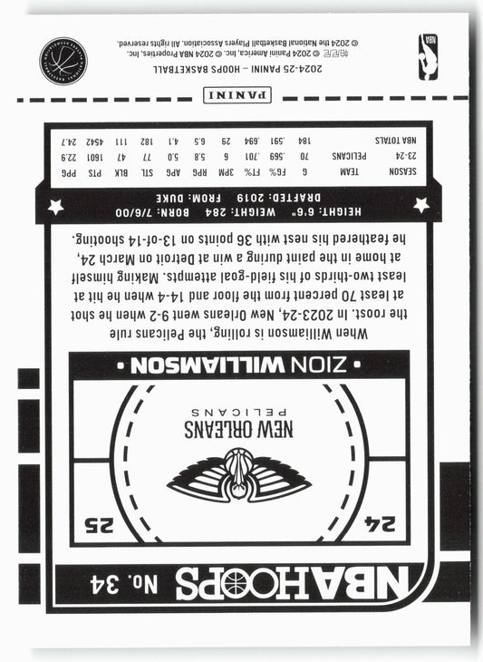 This is a nice example of a 2024-25 Hoops #34 Zion Williamson Silver Other important information about this card:SNIn 2024 Zion Williamson played for the New Orleans Pelicans.Please check out...