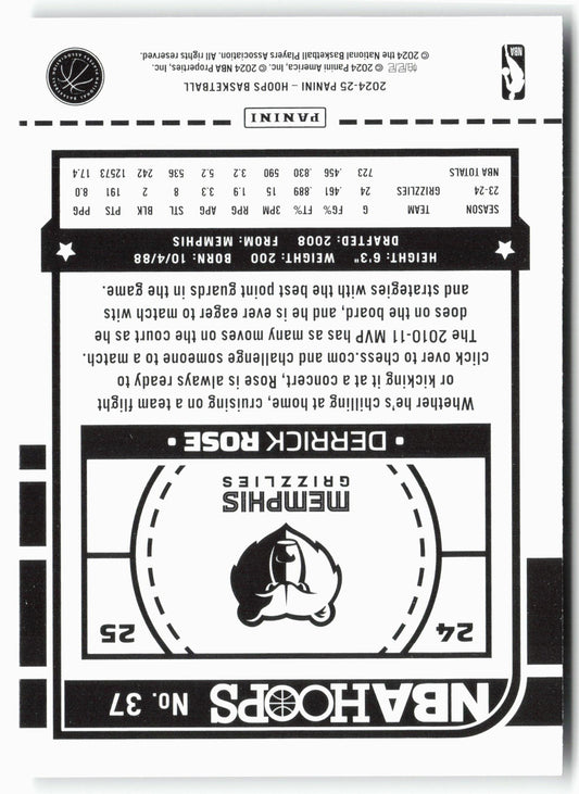 This is a nice example of a 2024-25 Hoops #37 Derrick Rose Other important information about this card:In 2024 Derrick Rose played for the Memphis Grizzlies.Please check out our other...