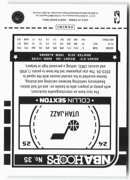 This is a nice example of a 2024-25 Hoops #35 Collin Sexton Other important information about this card:In 2024 Collin Sexton played for the Utah Jazz.Please check out our other...