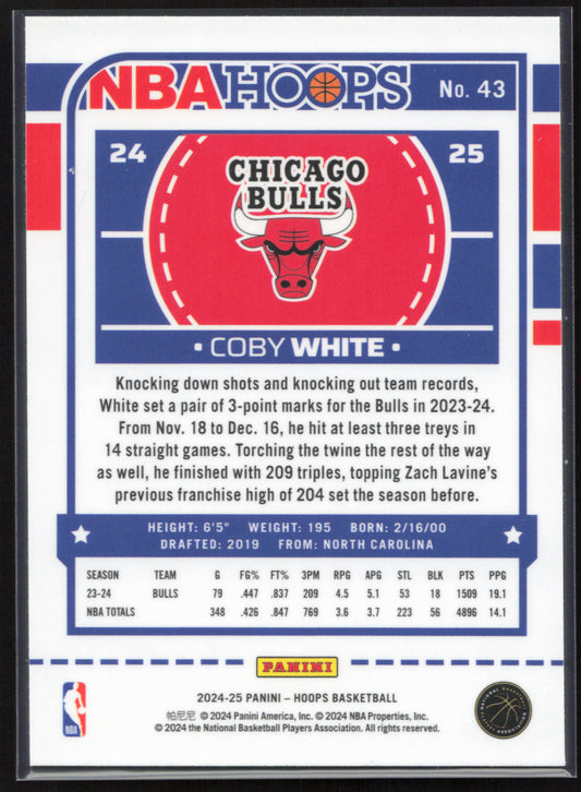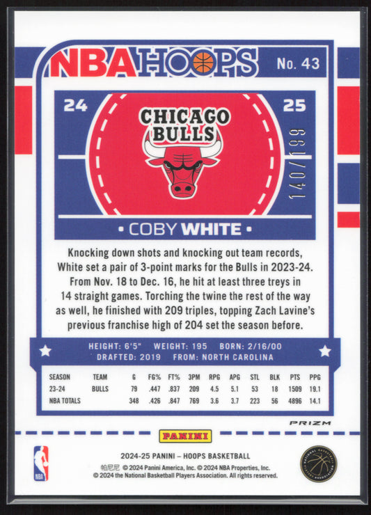 This is a nice example of a 2024-25 Hoops #43 Coby White Premium Other important information about this card:In 2024 Coby White played for the Chicago Bulls.Please check out our...