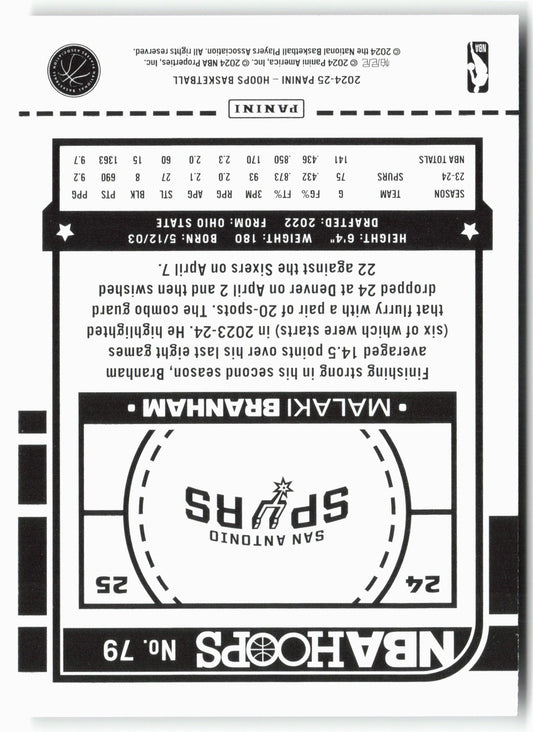 This is a nice example of a 2024-25 Hoops #79 Malaki Branham Other important information about this card:In 2024 Malaki Branham played for the San Antonio Spurs.Please check out our...