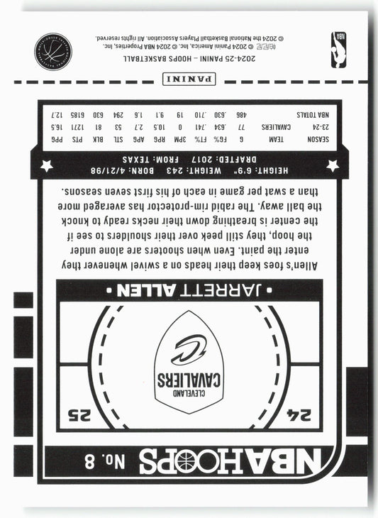 This is a nice example of a 2024-25 Hoops #8 Jarrett Allen Other important information about this card:In 2024 Jarrett Allen played for the Cleveland Cavaliers.Please check out our other...
