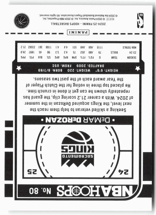 This is a nice example of a 2024-25 Hoops #80 DeMar DeRozan Other important information about this card:In 2024 DeMar DeRozan played for the Sacramento Kings.Please check out our other...