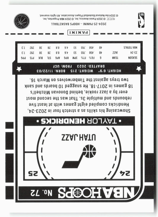 This is a nice example of a 2024-25 Hoops #72 Taylor Hendricks Other important information about this card:In 2024 Taylor Hendricks played for the Utah Jazz.Please check out our other...