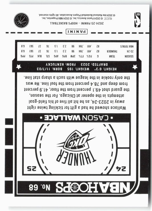 This is a nice example of a 2024-25 Hoops #68 Cason Wallace Other important information about this card:In 2024 Cason Wallace played for the Oklahoma City Thunder.Please check out our...